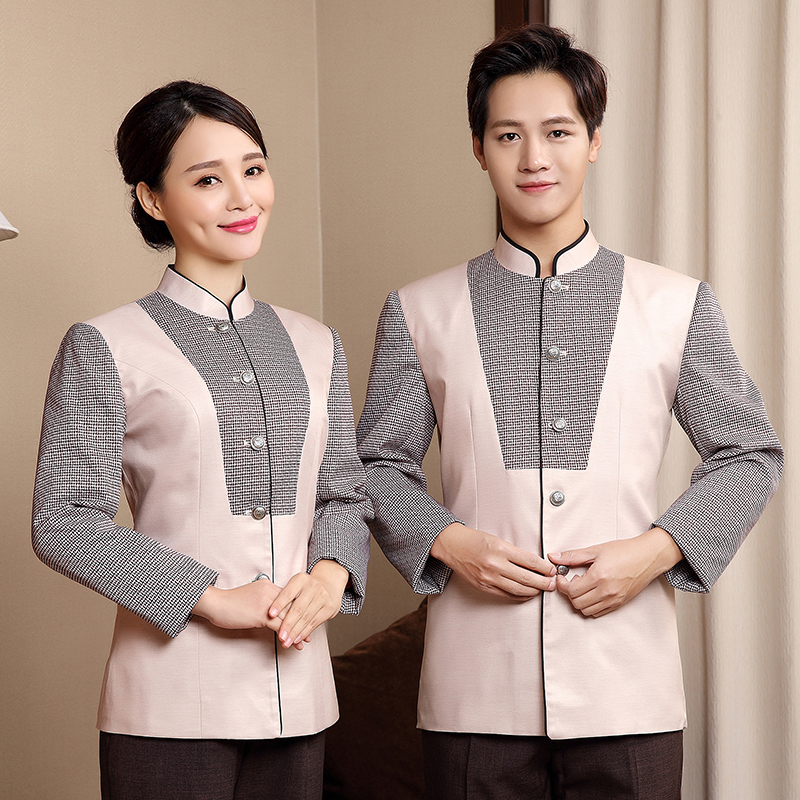 定制工衣春秋季酒店宾馆套装修身棉质清结服务员工作服厂家批发