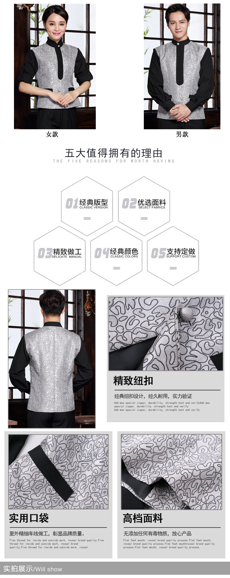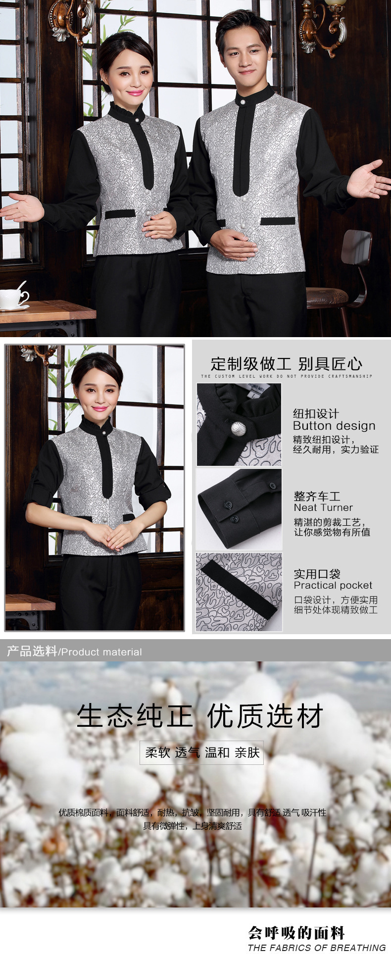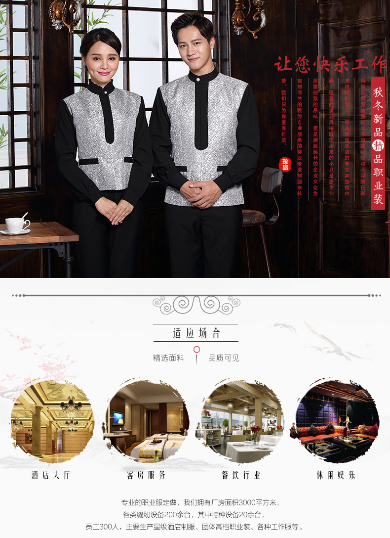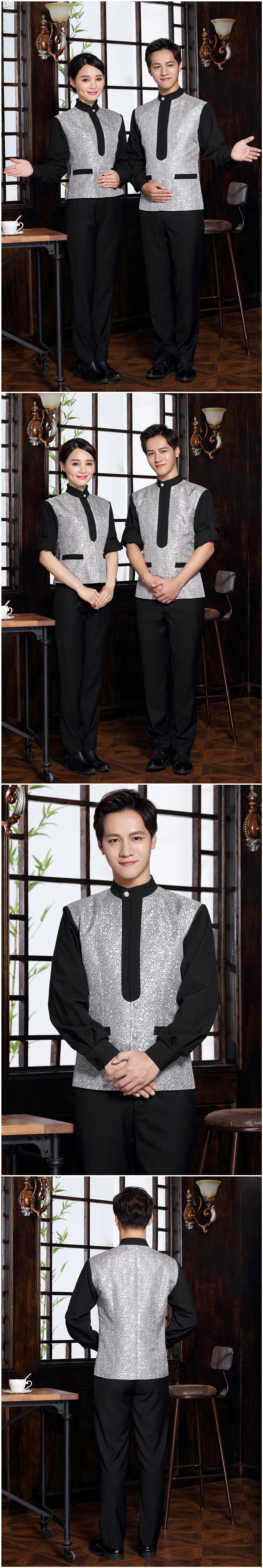 春季新款酒店长袖工作服套装餐厅服务员职业装来图来样服装订做