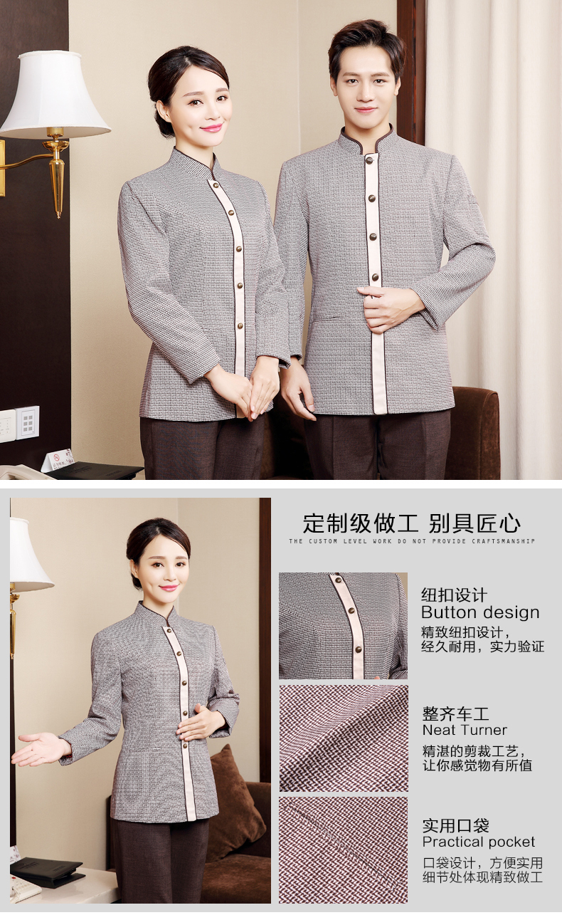 新款保结长袖工作服定制酒店客房服务员职业装男女款套装高端服装