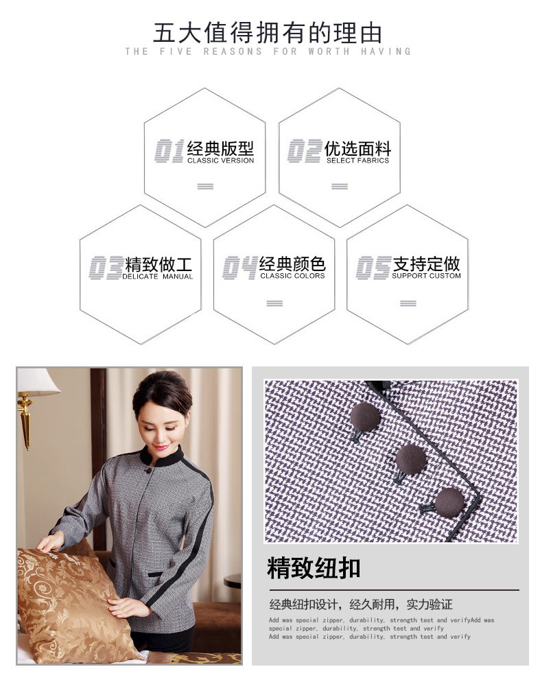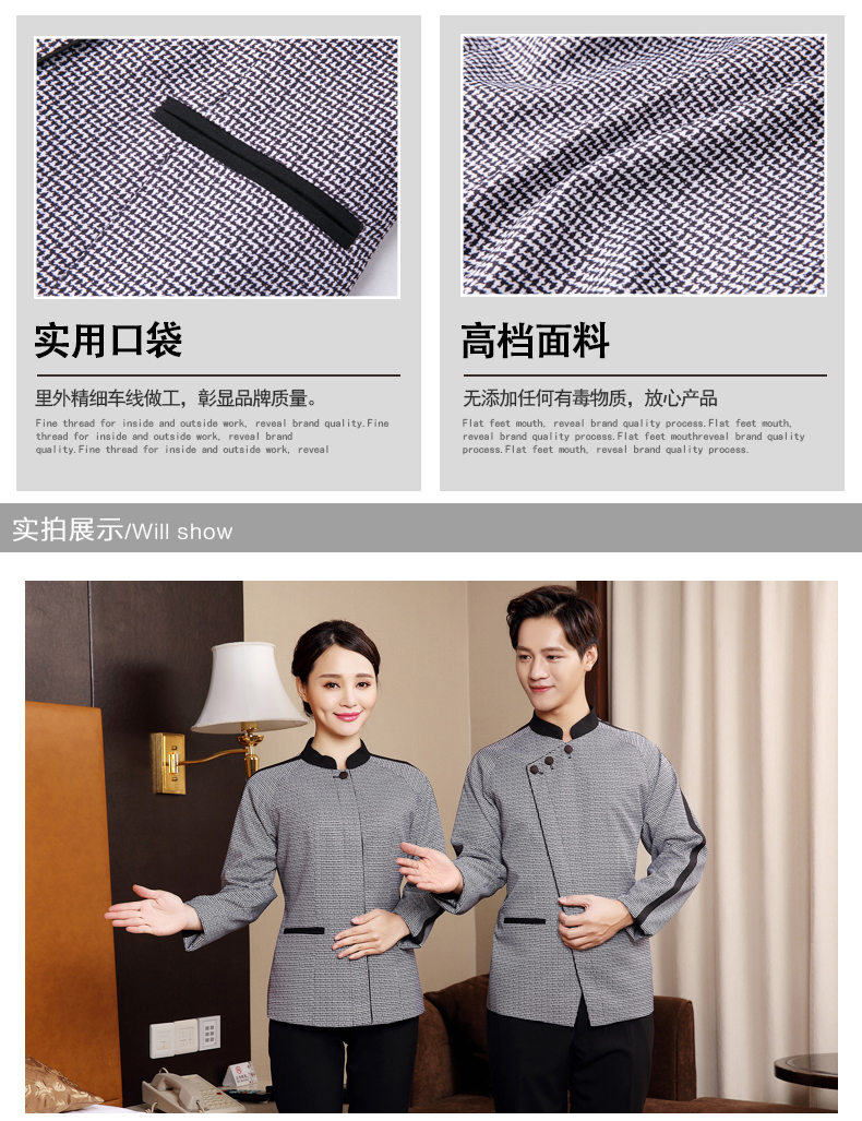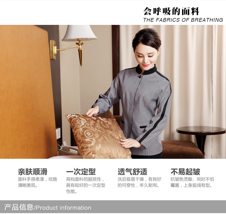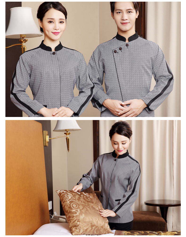 定制工衣春秋季酒店宾馆套装修身棉质清结服务员工作服厂家批发